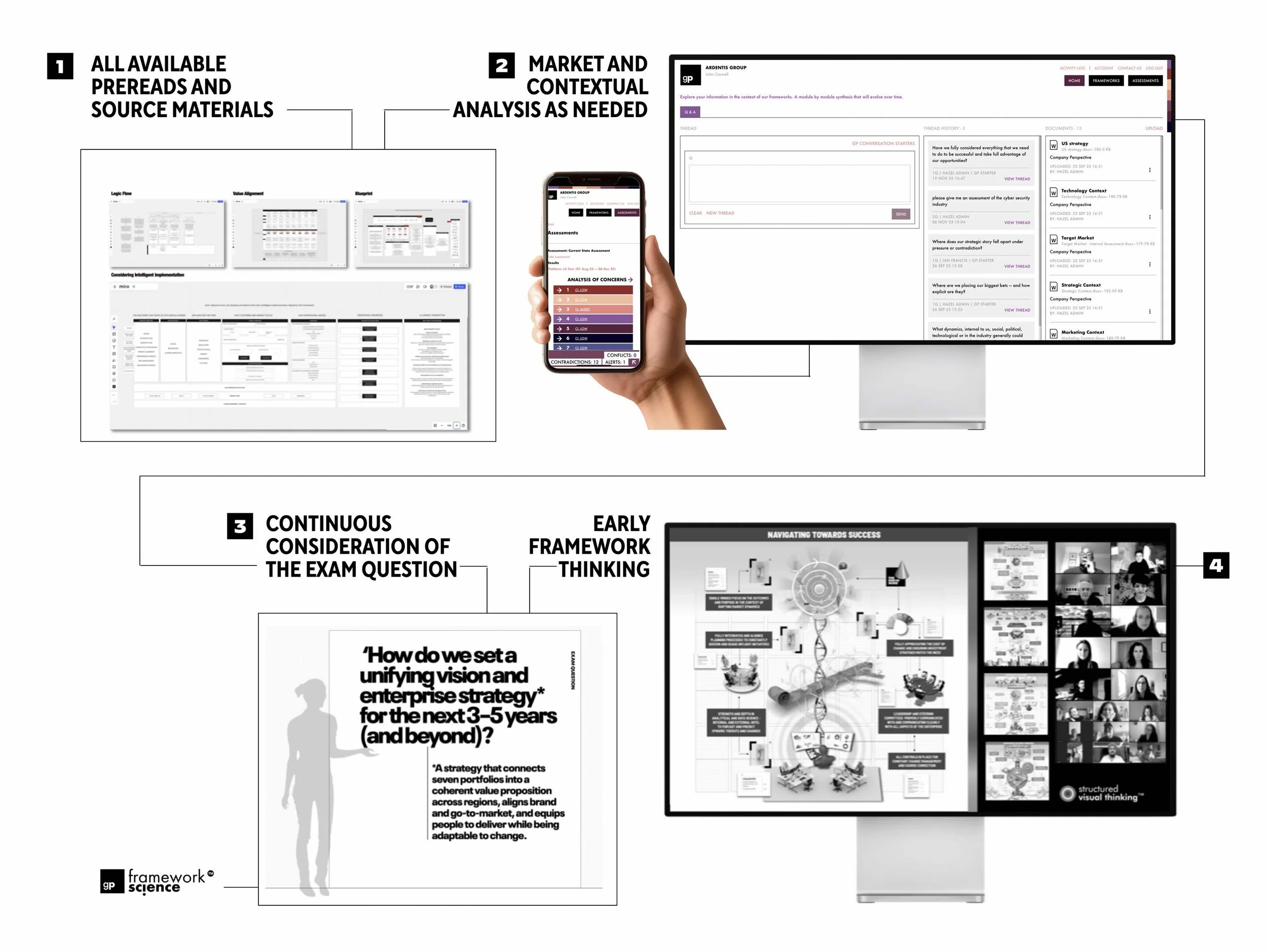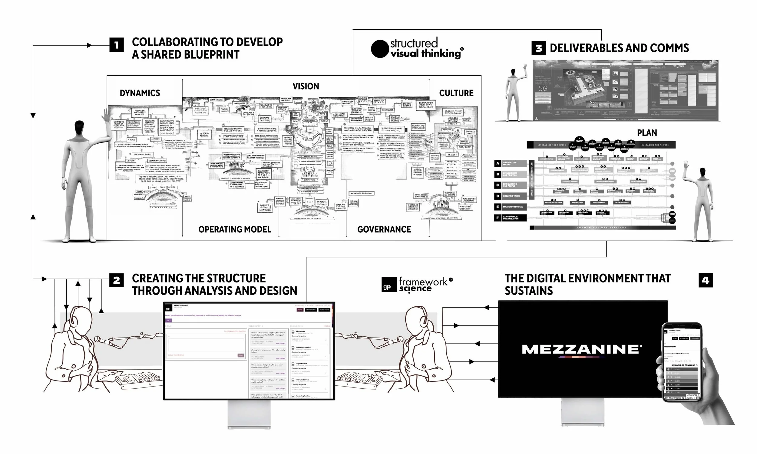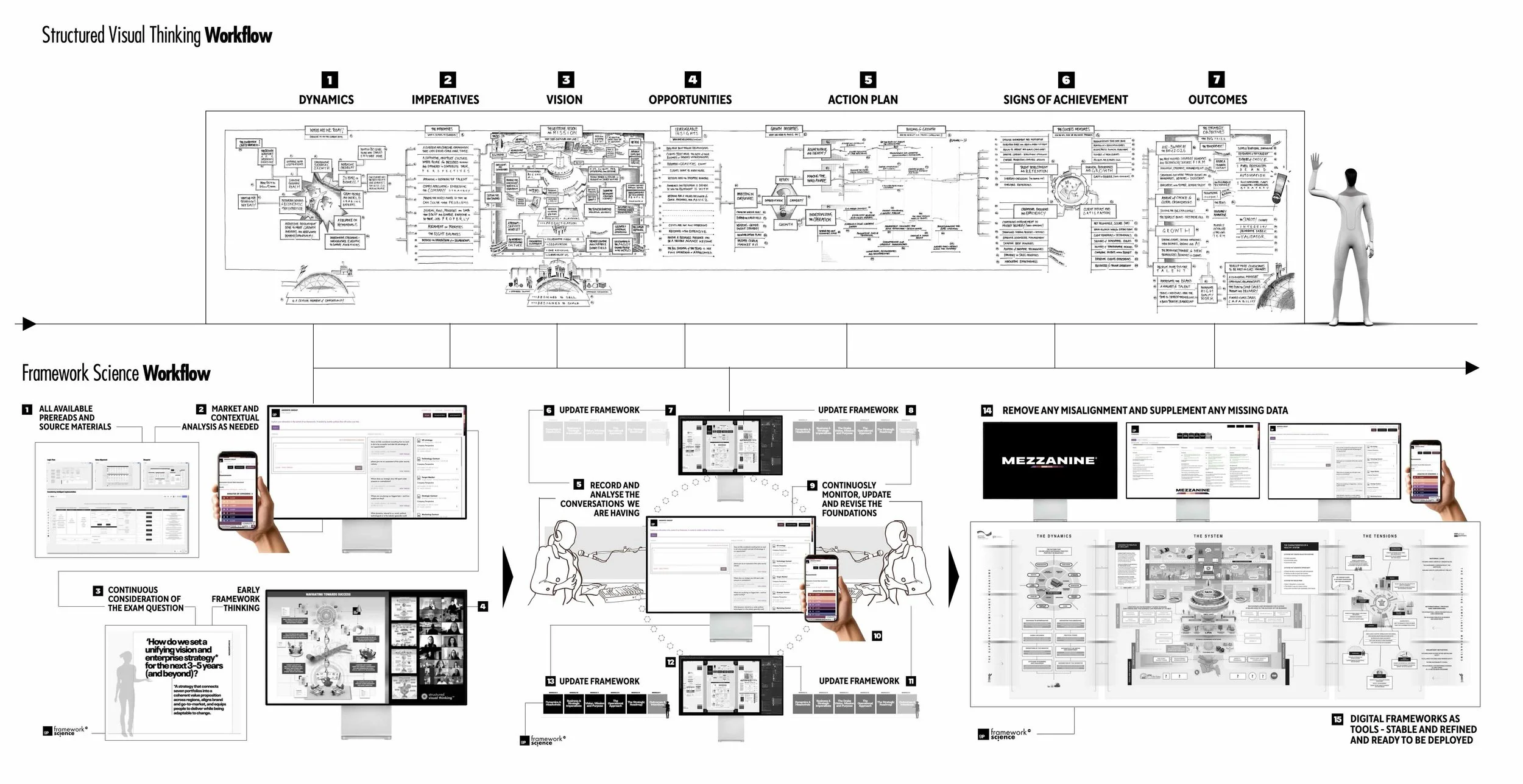 The combination of Structured Visual Thinking™, Framework Science™, and Mezzanine™ creates a complete decision-intelligence environment.